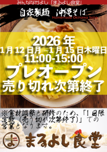 2026年 1月12日月~1月15日木曜日 11:00-15:00 プレオープン 売り切れ次第終了 2026年 1月16日(金) 11:00- グランドオープン まるよし食堂ホームページはこちら お知らせ ゼロからでもできる 社会参加 福祉 障がいがあってもあきらめない まるよし食堂 ゼロからでもできる デイサービス 就労継続支援B型 就労継続支援C型 沖縄そば 社会参加 福祉 障がいがあってもあきらめない この記事が気に入ったら いいね または フォローしてね! Follow @studio_lifework Follow Me よかったらシェアしてね! URLをコピーしました! URLをコピーしました! みんななかよしまるよし食堂。自家製麺でつなぐ、やさしい沖縄そば。笑顔でつながる人と人 この記事を書いた人 machida お祭り番長 「障がいがあってもあきらめない」「ゼロからでもできる」studio life work代表. エイサー検定特級 介護福祉士 相談支援専門員 カメラマン 地謡。ソフトボール、野球が好き。バッターボックス内の緊張感がたまらない。 最近は長谷川唯、パク・ミニョンの立ち姿が綺麗なのは何故なのか?気になってしょうがない。革靴とヒールの「コツコツ」する音が大好物。短い睡眠で寝る瞬間までのパフォーマンスを維持したい。「ナッペ」ができるようになりたい。 関連記事 みんななかよしまるよし食堂。自家製麺でつなぐ、やさしい沖縄そば。笑顔でつながる人と人 2025年10月29日 CHIMUDON MAP(チムドンマップ)ネーミングとロゴ制作 2025年9月30日 「運営指導」と、心の豊かさのために 2025年6月12日 愛車CT125ハンターカブ定期点検!ホンダドリームでの整備と、仕事への想いを新たにした時間 2025年4月17日 「できた」があふれる毎日。Studio Life Workで生まれる小さな奇跡 2025年4月17日 シアタードーナツに行こう! 2025年4月15日 愛犬ライフとバイクでGO!笑顔の交換と、大切な「食」の支援のお願い 2025年4月11日 新しい一歩を、スタジオライフワークで踏み出しませんか? ~デイサービス・就労継続支援B型のご案内~ 2025年4月4日